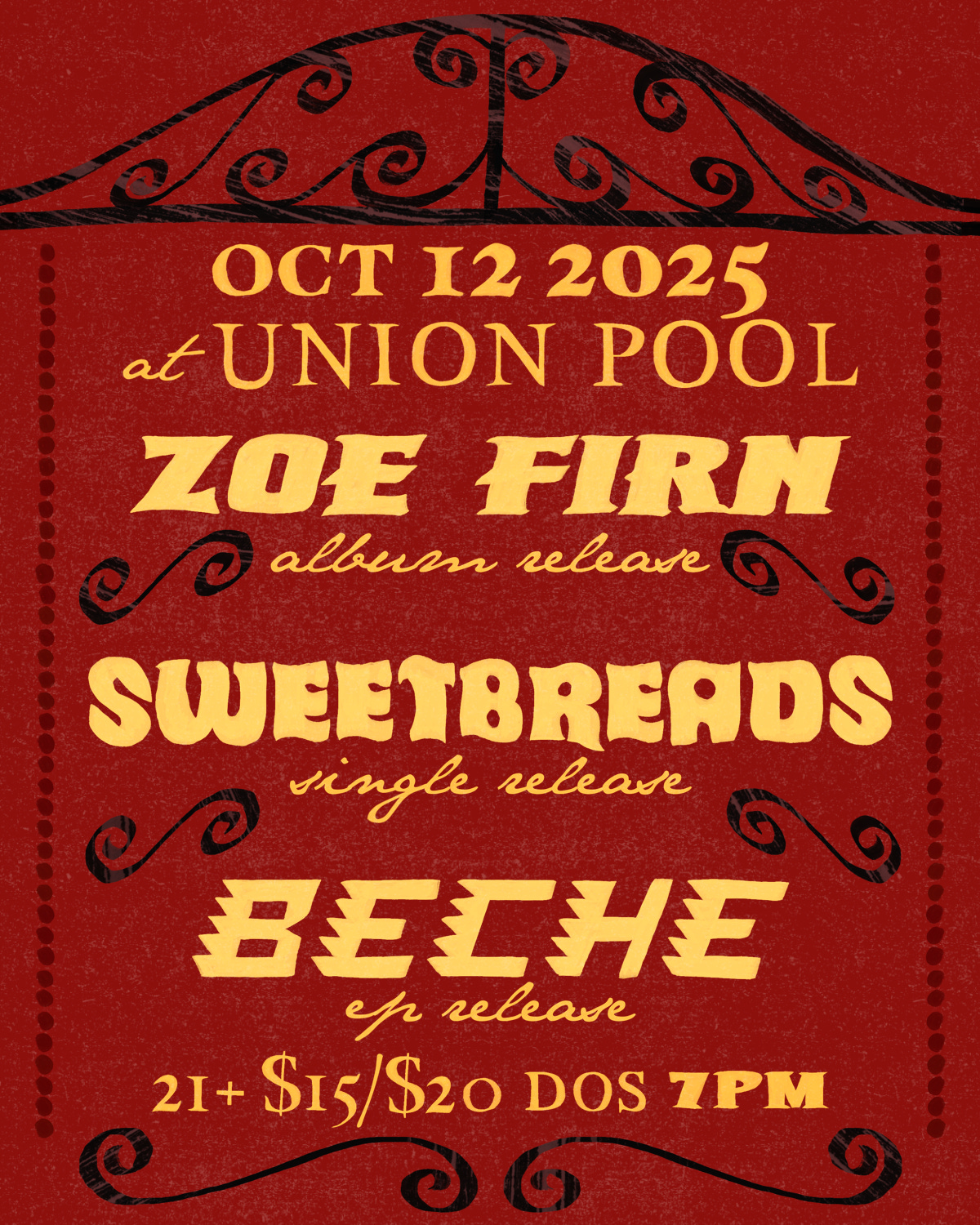 3) I would like to sell out my show at Union Pool on October 12, 2025, because people coming to live shows and being in a room together generates energy and connection that is unique to that space and time.